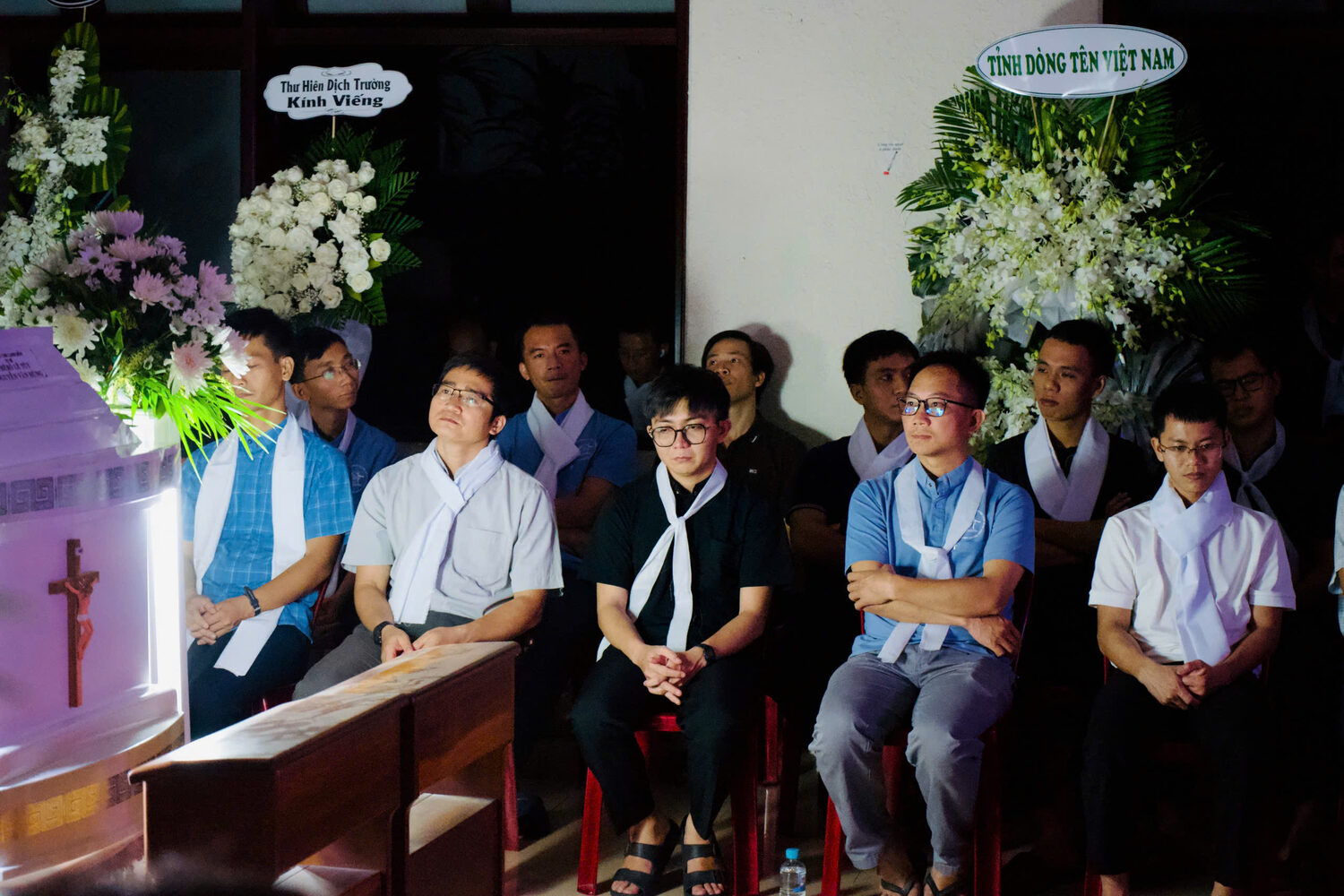 Buổi tối trước ngày tiễn biệt thầy Phêrô Lê Tuỳ Nguyễn Văn Hùng, SJ, trong bầu khí lắng đọng tại Nhà Nguyện Nhà Hưu Dòng Tên, Thủ Đức, anh em Dòng Tên cùng ông bà cố, gia đình, thân hữu và nhiều người yêu mến đã quy tụ quanh linh cữu của thầy Phêrô Lê Tuỳ Nguyễn Văn Hùng, SJ, để cùng nhau sống một giờ canh thức tạ ơn và cầu nguyện.